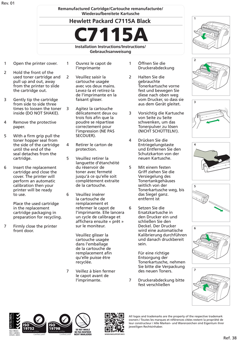 We can remanufacture this product in a way that does not require the use of a seal. Simply remove any clip or brightly coloured tape from the toner cartridge, insert the cartridge into your printer and it will work as normal.