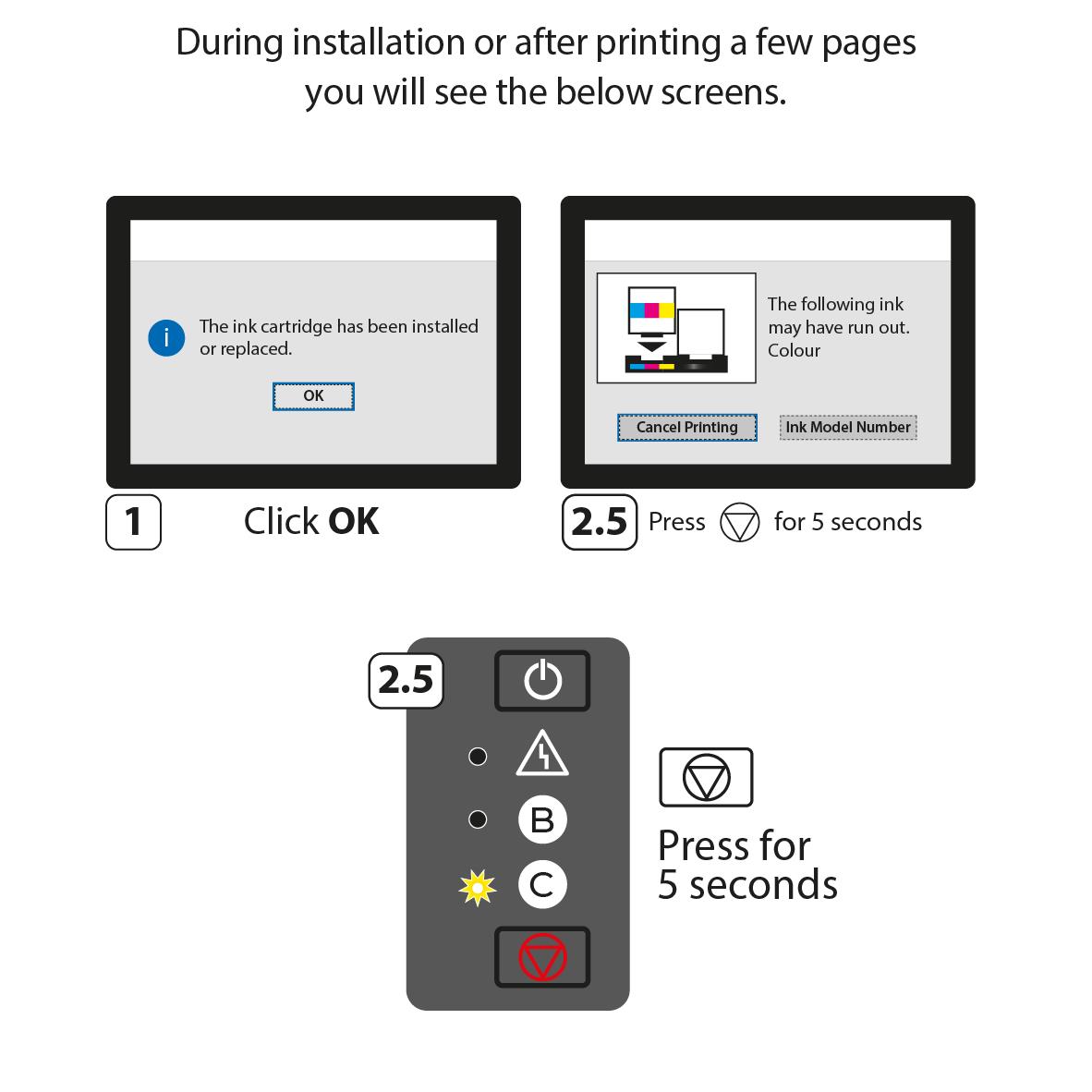 With this chip in place, your cartridge can be inserted into your printer and the correct ink levels will display on your status monitor.